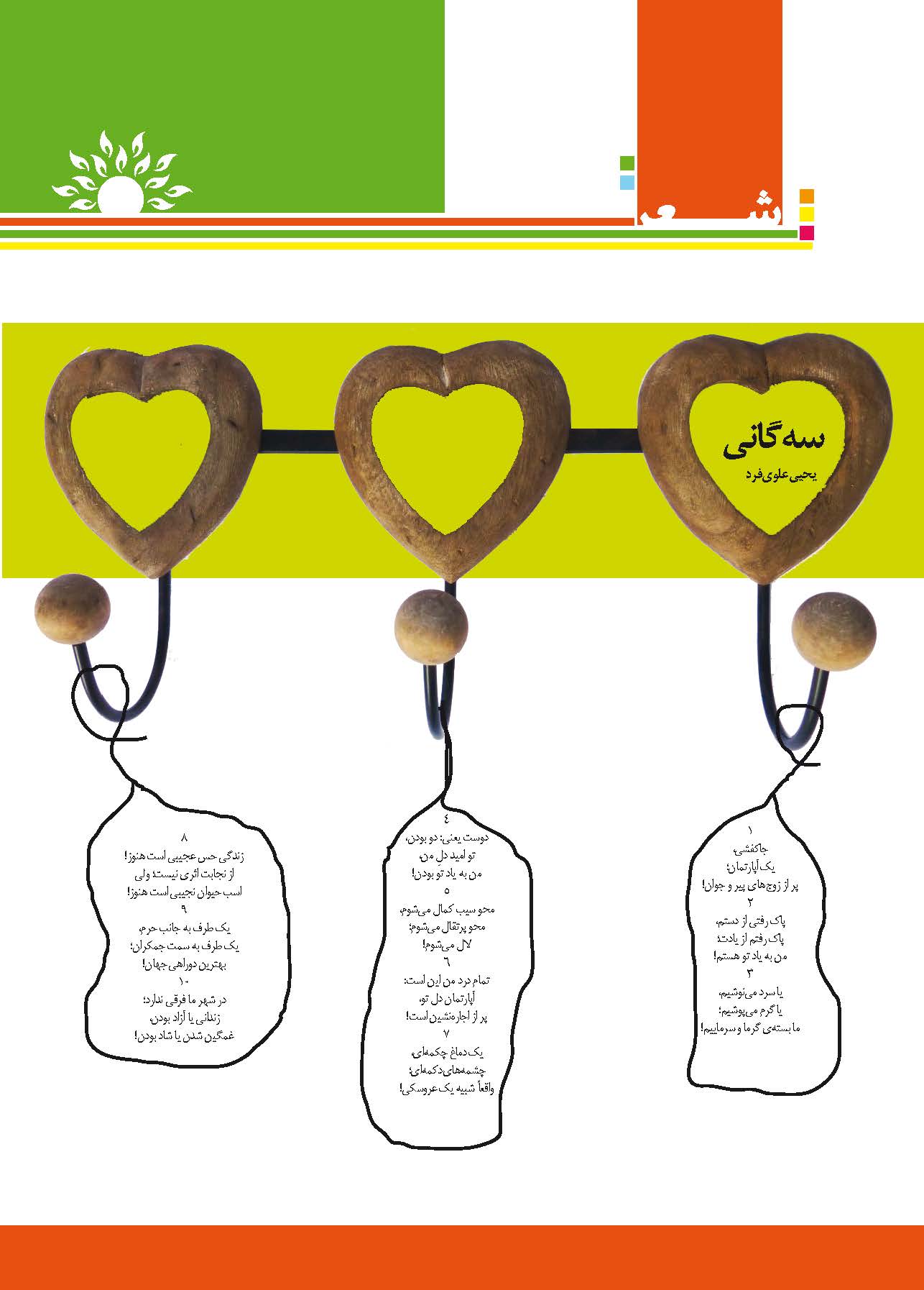 استاد یحیی علوی‌فرد، به انتشار سه‌گانی‌های نوجوان و جوان خود در مجلات مربوط به این دو رده‌ی سنی اقدام کرده‌اند و با این کار ارزنده، نخستین بار است که سه‌گانی رسما وارد شعر نوجوان و جوان فارسی می‌شود.